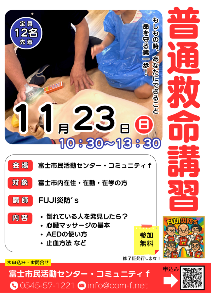 この度、皆さまの安心な暮らしを支えるために、普通救命講習を開催いたします。